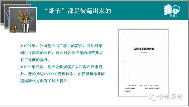第二章,雙童樓仲平結(jié)合我們雙童自身的真實案例,來說明實施精細化管理對產(chǎn)品質(zhì)量的重要性!通過和日本客戶的合作,我們一次次地提升,一次次地逼著自己做更高的要求和改變,以此來達到客戶的需求,更通過這些舉措,慢慢地改變我們自己的產(chǎn)品質(zhì)量和員工素質(zhì)!