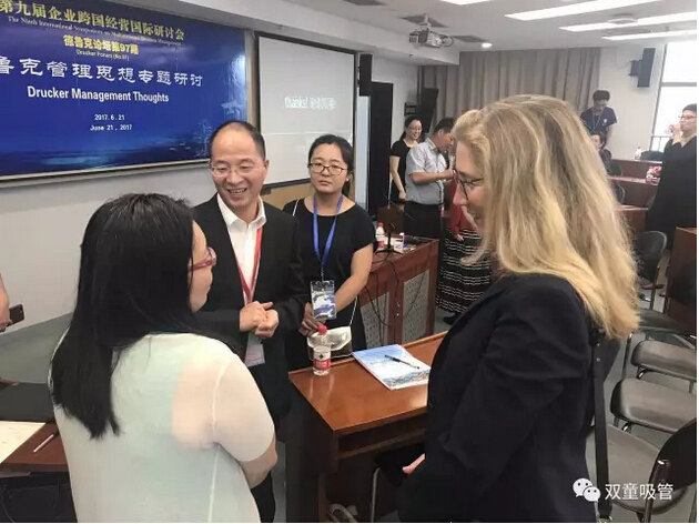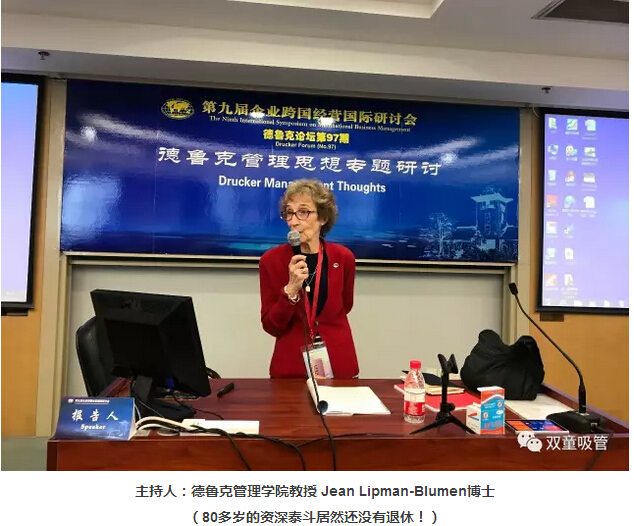 論壇正式開始,現(xiàn)場來了很多著名的國外學(xué)者,有英文同聲翻譯對分享者的課程進(jìn)行翻譯,大家圍繞德魯克管理思想進(jìn)行專題探討!此次論壇的主持人是來自美國彼得?德魯克管理學(xué)院教授Jean Lipman-Blumen博士,80高齡的她特地從美國來到中國參加此次跨國經(jīng)營國際論壇!
