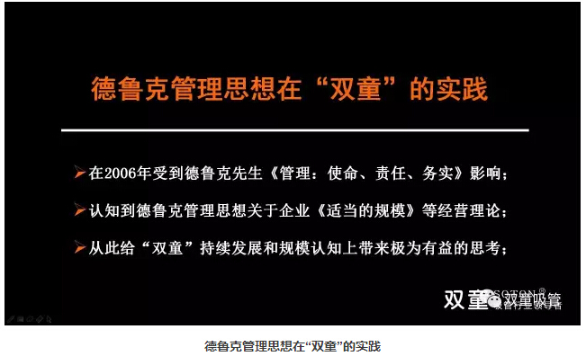 德魯克管理思想關(guān)于企業(yè)《適當(dāng)?shù)囊?guī)?!返冉?jīng)營理論,給“雙童”持續(xù)發(fā)展和規(guī)模認(rèn)知上帶來極為有益的思考!