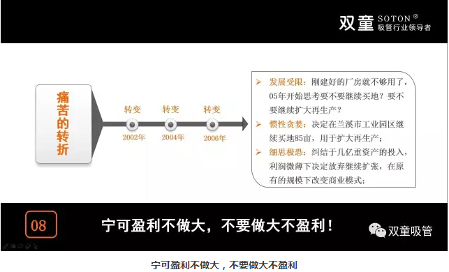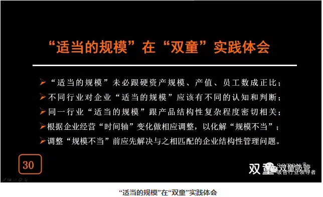 “適當(dāng)?shù)囊?guī)模”未必跟硬資產(chǎn)規(guī)模、產(chǎn)值、員工數(shù)成正比,不同行業(yè)對企業(yè)“適當(dāng)?shù)囊?guī)模”應(yīng)該有不同的認(rèn)知和判斷,根據(jù)企業(yè)經(jīng)營“時間軸”變化做相應(yīng)調(diào)整來改變“雙童”未來在行業(yè)當(dāng)中的地位!