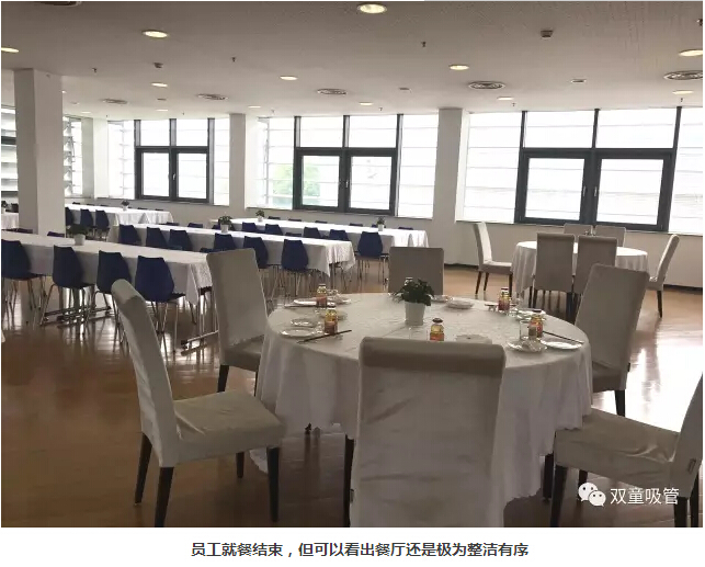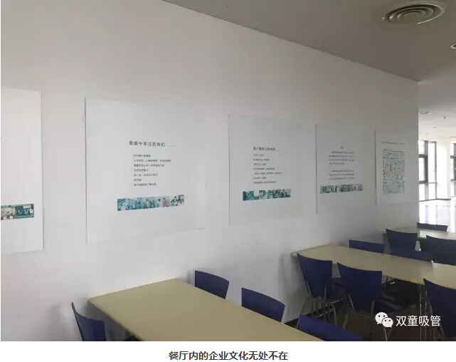 在參觀完文化展區(qū)和產品展區(qū)之后,時間已經到12點半,“雙童”樓仲平和李二橋來到了員工餐廳,體驗菲尼克斯飲食文化。雖然由于時間關系,我們沒有看到員工們用餐的情景,但是通過餐廳簡潔有序、明快的擺設風格、無處不在的文化標語,也能看出菲尼克斯獨特的人文精神和企業(yè)文化。
