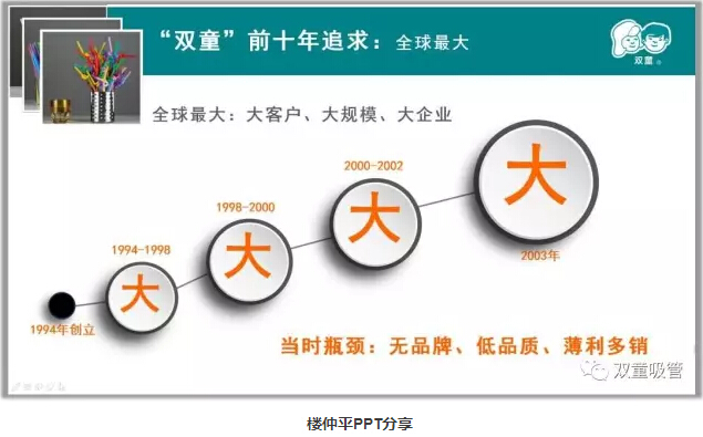“雙童”樓仲平也坦言:“雙童”在初期的發(fā)展和義烏許多民營企業(yè)一樣,前十年也追求全球最大,但是當時產(chǎn)生的瓶頸是無品牌、低品質(zhì)、薄利多銷。但2003年之后,“雙童”基于當時企業(yè)界盲目的國際化浪潮,“雙童”選擇了國內(nèi)與國外市場并舉,明確將市場開拓的中心轉(zhuǎn)移到國內(nèi)市場,明確開始在國內(nèi)市場投放廣告推廣,逐漸向品牌化、個性化、精細化轉(zhuǎn)變。