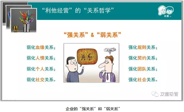 當(dāng)了解到“雙童”員工中有130多個家庭時,菲尼克斯團(tuán)隊也提出了企業(yè)中的親屬關(guān)系該如何避免的疑惑。樓仲平也分享了“雙童”的關(guān)系哲學(xué):在“雙童”,雖然有非常多的小家庭,但我們制定了親屬回避制度,以規(guī)則來制定關(guān)系,從而弱化血緣關(guān)系,強(qiáng)化規(guī)則關(guān)系。同時弱化人情關(guān)系,強(qiáng)化契約關(guān)系,盡量減少人情上的關(guān)系,把工作以契約的形式加以固定,從而避免錯綜復(fù)雜的親屬裙帶關(guān)系,也少了許多復(fù)雜的人情困擾!