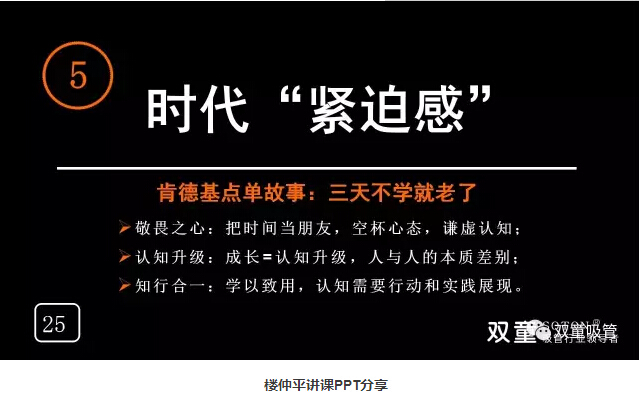 時代“緊迫感”:“雙童”樓仲平在時隔幾天去肯德基時,發(fā)現(xiàn)肯德基已經(jīng)在自助點單了,而自己還在傻傻的等工作人員點餐!這也告訴我們要不斷地學(xué)習(xí),三天不學(xué)你就老了!舊觀念終結(jié),發(fā)展模式層出不窮,新的生活方式不斷呈現(xiàn),行業(yè)變化之快,超出想象,如果你不學(xué)習(xí)就要被淘汰,你就“老了”!