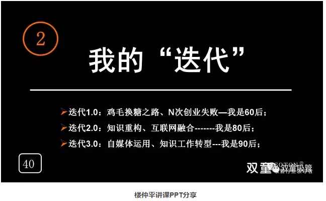 我的“迭代”:“雙童”樓仲平通過自身不斷的學(xué)習(xí):在浙大學(xué)習(xí)進修、學(xué)習(xí)電腦設(shè)計,認(rèn)知到自媒體作用,與年輕人鏈接、培養(yǎng)團隊,自己轉(zhuǎn)變教育工作……不斷否認(rèn)自我、重新認(rèn)知,實現(xiàn)迭代!