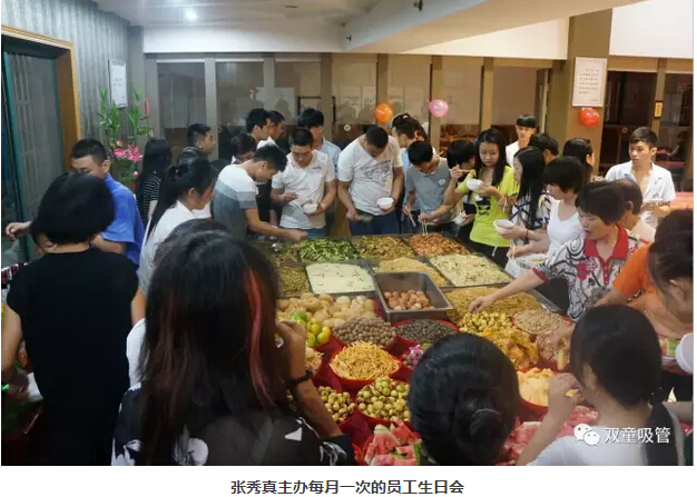 值得一提的是,“雙童”員工們最喜歡的生日會,基本上都是由后勤部門負(fù)責(zé)組織舉辦!如何把生日會辦好,也是一門學(xué)問。如何根據(jù)生日壽星的人數(shù)、部門、年齡段,安排生日會的形式、飲食、游戲環(huán)節(jié)等等,都是張秀真要思考的問題。員工們總說,“雙童”的生日會每次都玩得很盡興!這些都離不開張秀真的用心策劃呢!