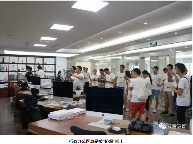 在參觀過程中,帶領(lǐng)著其中一隊參觀的樓仲平對餐廳管理、宿舍管理、員工人文關(guān)懷、精細化管理等方面進行了全面的介紹和交流。干凈整潔的員工餐廳、酒店式的員工寢室、透明開放的辦公環(huán)境…… 每到一處,大家都用手機拍攝記錄,對“雙童”的環(huán)境和理念驚嘆不已!