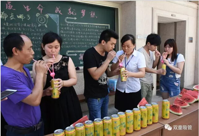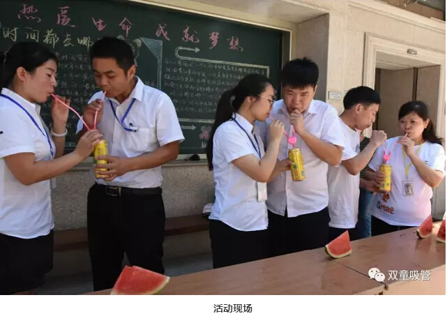 這不,昨天中午12點(diǎn),我們?cè)谛麄鳈谇芭e辦了“秀恩愛”趣味大賽。報(bào)名參賽的情侶和夫妻們用“雙童”的愛心吸管共同喝一瓶飲料,喝完飲料馬上進(jìn)入到“喂西瓜”環(huán)節(jié),用時(shí)最短的情侶還有豐厚的獎(jiǎng)品呢!