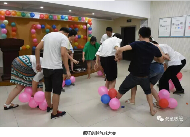 吃飽喝足,我們的七夕晚會(huì)也正式開始!后勤科也準(zhǔn)備了很多浪漫游戲環(huán)節(jié)和豐厚的獎(jiǎng)品。游戲現(xiàn)場(chǎng)最激動(dòng)人心的就屬踩氣球環(huán)節(jié)啦!現(xiàn)場(chǎng)的情侶和單身男生女生報(bào)名上場(chǎng),一男一女搭配,每組成員左右腳捆綁五個(gè)氣球,并互相踩其他小組的氣球,最后氣球數(shù)量剩余最多的組合獲勝!看,男生們都護(hù)著自己的女伴呢!