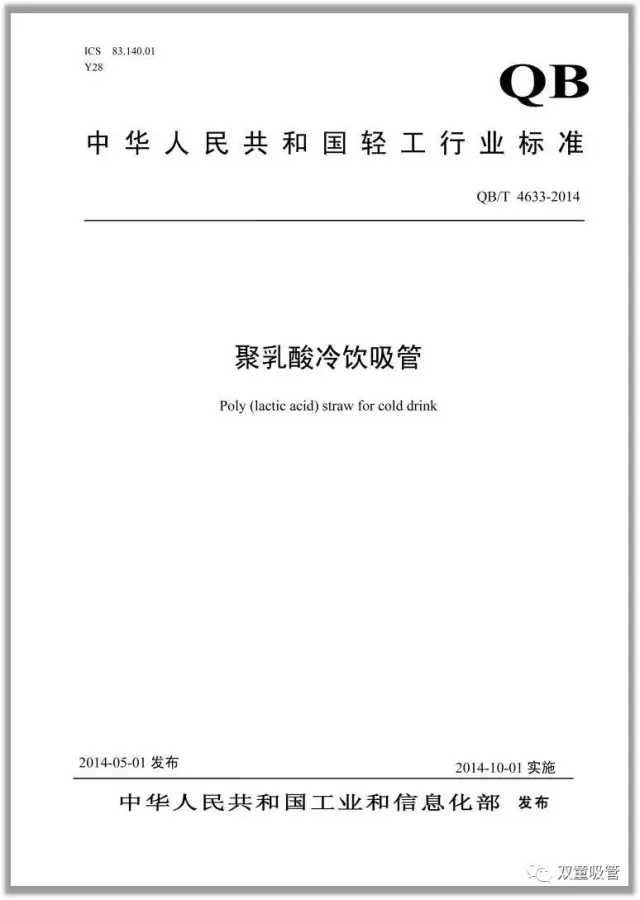 “雙童”主導(dǎo)起草的 QB/T《聚乳酸冷飲吸管》國家行業(yè)標(biāo)準(zhǔn)