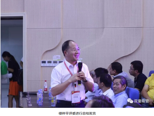 答辯結(jié)束之后,組委會(huì)邀請(qǐng)“雙童”樓仲平上臺(tái)發(fā)表決賽感言。事先并不知情的樓仲平評(píng)委針對(duì)此次競賽,做了即興的總結(jié)發(fā)言。