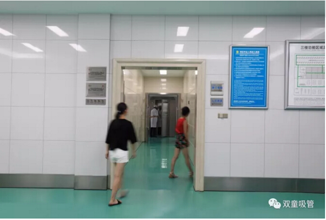 3.經(jīng)過了兩道防護門后,員工們更衣后通過更衣防護門進入洗手消毒區(qū)域。