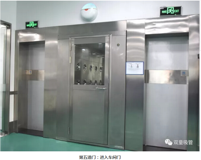 5.員工們風(fēng)淋后經(jīng)過第五道車間入口門,進入車間進行生產(chǎn)工作。