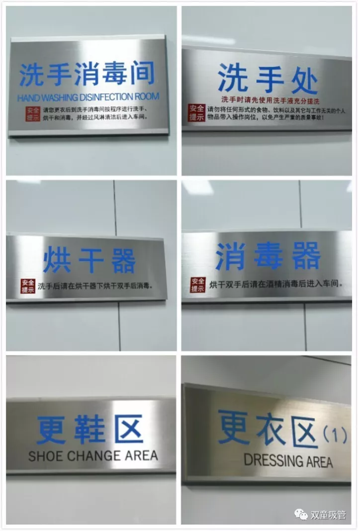 除此之外,功能區(qū)內(nèi)還配置了高端的烘干器、消毒器、感應(yīng)水龍頭以及酒精消毒器等硬件,并配置了許多精心定制的標示牌,提示著員工規(guī)范使用!這樣的配備也為員工的衛(wèi)生要求做了硬件的保障,確保員工工作環(huán)境的極致衛(wèi)生!