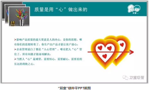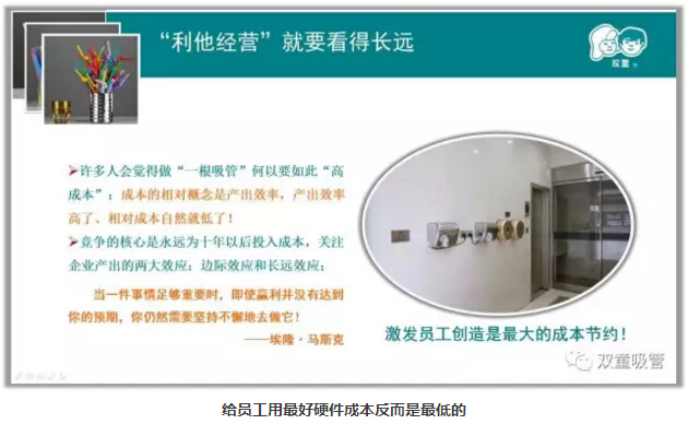 各位粉絲們,截止今日,吸管妞推出的《“雙童”高品質(zhì)管理的背后邏輯》系列文章已經(jīng)全部推送完畢!通過“五星級員工餐廳”、“節(jié)能降耗設(shè)施”、“五星級工廠”、“讓員工住三星級寢室”、“開放的辦公環(huán)境”、“五星級洗手間”等七篇微信文章,妞和大家分享了“雙童”之所以堅持高品質(zhì)管理背后的商業(yè)邏輯。