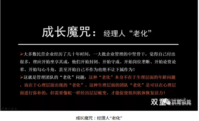 接下來,樓仲平也以“雙童”為案例,來驗證雇傭關系的轉(zhuǎn)變。企業(yè)存在成長魔咒,大多數(shù)民營企業(yè)在初期時組織關系十分簡單。但在企業(yè)規(guī)范之后,組織管理的方式在不斷改變。