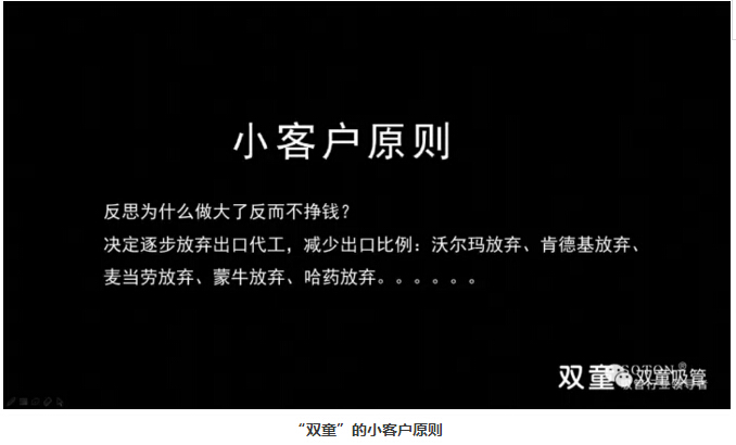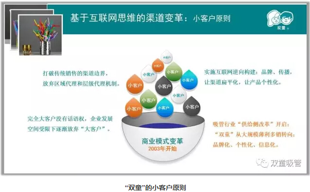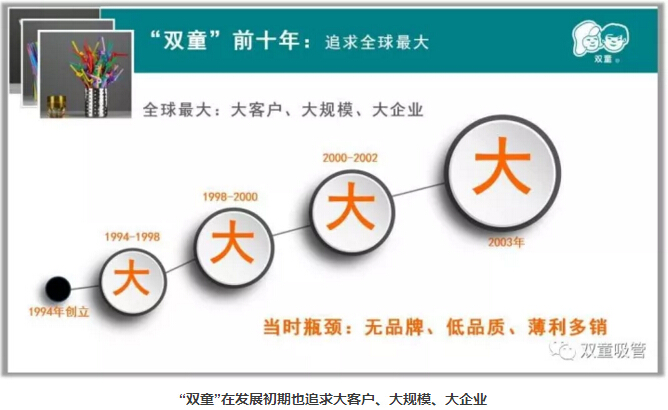 許多人都知道雙童有一個(gè)被收錄到清華、浙大等大學(xué)MBA教材的經(jīng)營戰(zhàn)略,叫做小客戶原則。這個(gè)經(jīng)營戰(zhàn)略指導(dǎo)雙童走出了企業(yè)大而不強(qiáng)、薄利多銷的發(fā)展瓶頸,從而牢牢占據(jù)吸管行業(yè)領(lǐng)導(dǎo)者的地位。那么,這個(gè)戰(zhàn)略是如何提出的呢?