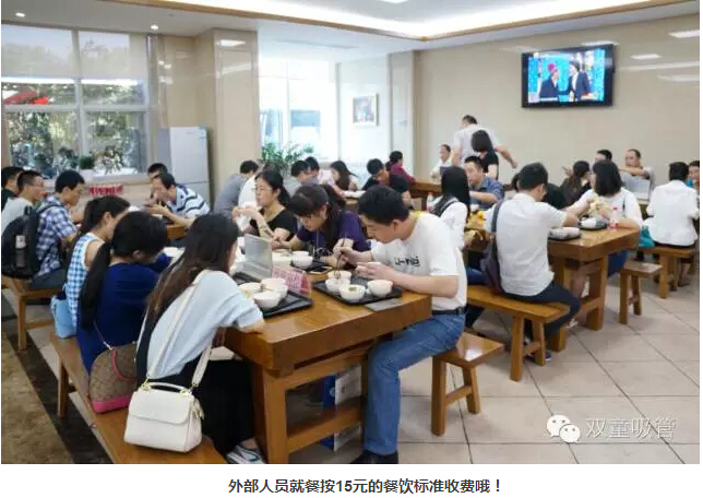 如此好的員工餐廳,總是免不了外部的參觀人員想要來體驗(yàn),為了保障食堂的成本,我們設(shè)置了每人15元的餐飲標(biāo)準(zhǔn)!不少來“雙童”體驗(yàn)員工餐的小伙伴們都表示:“15元能吃到如此營養(yǎng)美味的飯菜十分值得呢”!