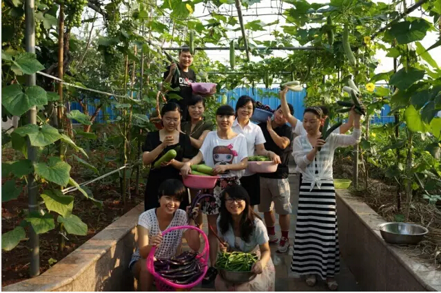 在豐收季節(jié),南瓜、絲瓜、青菜、四季豆、生姜、大蒜等二十三種蔬菜瓜果逐漸成熟,員工們都會到菜園里體驗采摘的樂趣,體驗一把農(nóng)夫的感覺!