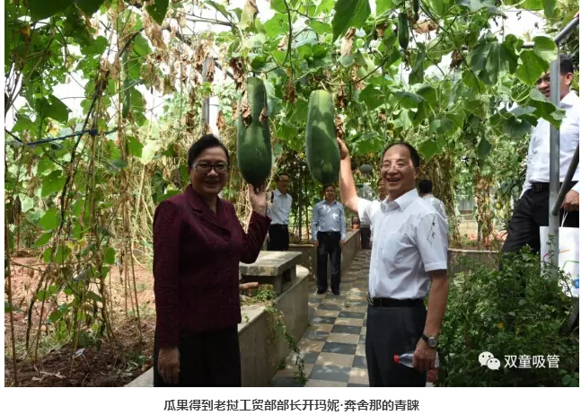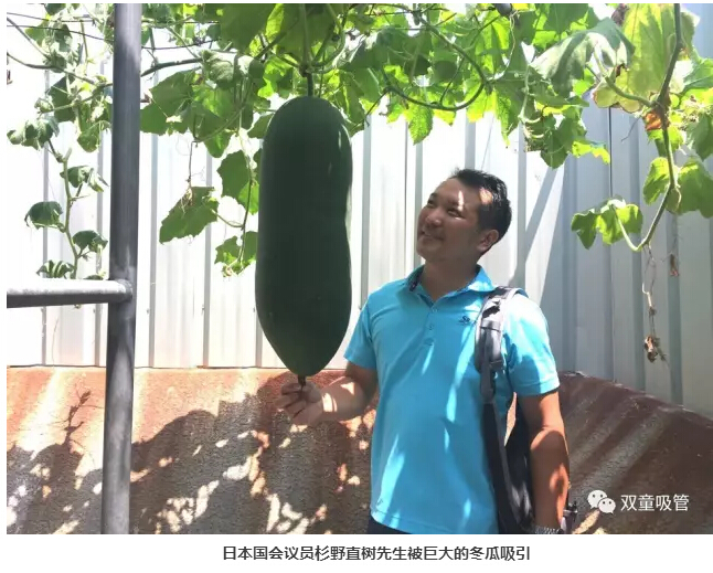 菜園子里還有很多“三生有幸”的瓜,不信!瞧,菜園里的這幾個冬瓜可是受到了日本議會議員杉野直樹先生、老撾工貿(mào)部部長開瑪妮·奔舍那的青睞,還留下了合影,你們說這些是不是“三生有幸”的瓜呢?