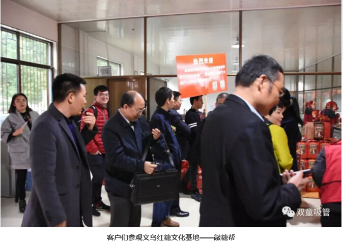 義烏紅糖是義烏著名的傳統(tǒng)土產(chǎn)品。義烏“紅糖之鄉(xiāng)”的名聲傳揚已久。11月恰逢義烏紅糖季,“雙童”也特地安排了客戶們參觀義烏紅糖文化基地——敲糖幫,了解義烏民俗紅糖文化。