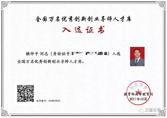 重磅好消息!近日,國(guó)家教育部公布了全國(guó)優(yōu)秀創(chuàng)新創(chuàng)業(yè)導(dǎo)師人才庫首批入庫導(dǎo)師名單,“雙童”樓仲平就是其中之一。