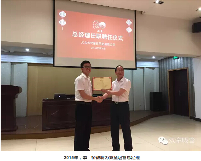 2015年5月,在義烏市雙童日用品有限公司首個(gè)總經(jīng)理任命儀式上,處于知天命之年的董事長(zhǎng)樓仲平將聘書(shū)遞給30歲的職業(yè)經(jīng)理人李二橋。作為老板,擁有一兒一女的樓仲平宣布,“李二橋不僅是CEO,將來(lái)干得好,也可能是公司的接班人”。