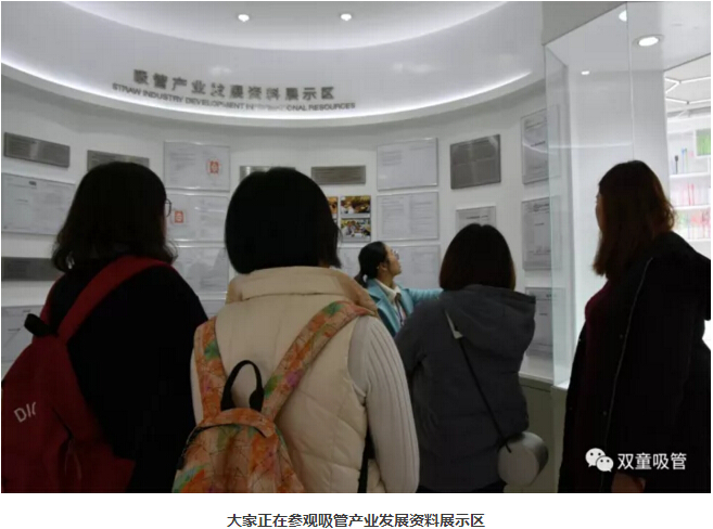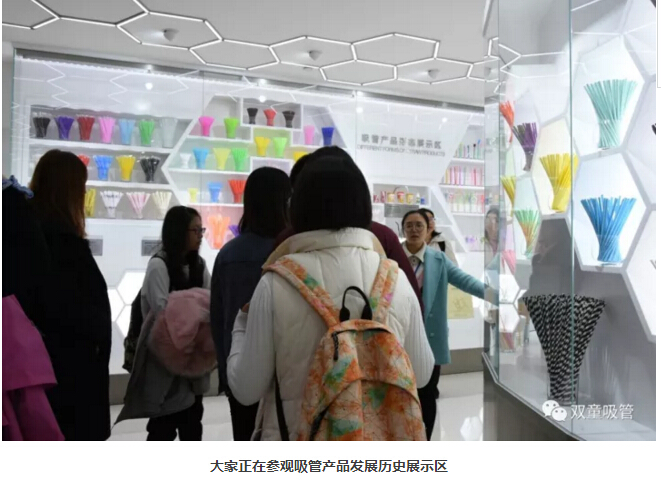 在參觀了吸管墻后,大家也了解了特殊的長吸管,長吸管和普通吸管的不同之處是它帶有雙童的專利——止回閥,有了止回閥,吸上去的水不會再回流到桶里,從而讓人們在用長吸管飲用過程中有一個更好的體驗(yàn)!緊接著,大家參觀了吸管產(chǎn)品形態(tài)展示區(qū),單支包裝吸管、常規(guī)類吸管產(chǎn)品、用于飲料配套的工業(yè)配套吸管、紙吸管、水晶玻璃吸管……形態(tài)各異的也讓參觀團(tuán)隊(duì)們看花了眼,直呼真是長見識了!