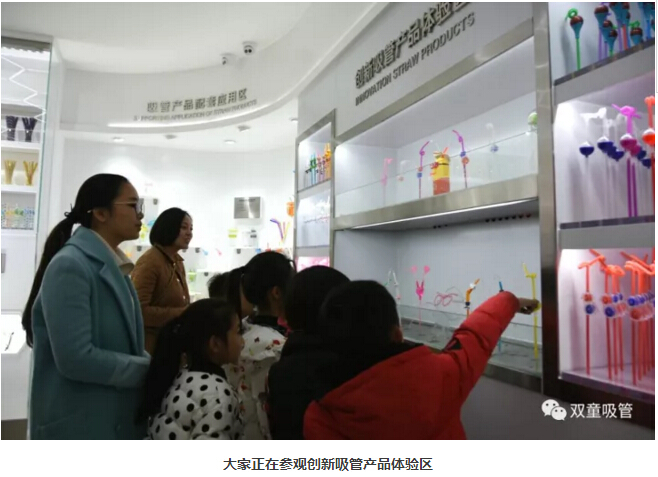 最后,大家來到了雙童產(chǎn)品的展示區(qū),風(fēng)車吸管、哈哈吸管、愛心吸管、party吸管、藝術(shù)吸管……“雙童生產(chǎn)的上百個品類的吸管也讓參觀團(tuán)們震撼不已!