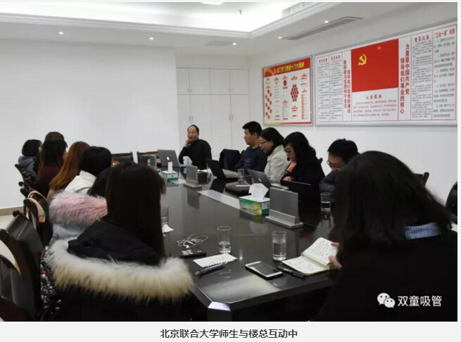 參觀結(jié)束后,部分團(tuán)隊(duì)也和樓仲平進(jìn)行了溝通交流,如北京聯(lián)合大學(xué)的師生專程從北京趕來義烏游學(xué),了解“雙童”的商業(yè)模式。樓仲平圍繞科學(xué)發(fā)展觀分享了“雙童”商標(biāo)的由來、節(jié)能降耗設(shè)施、員工關(guān)懷、企業(yè)自傳播等經(jīng)營理念。樓仲平通過“雙童”的發(fā)展告訴同學(xué)們企業(yè)的發(fā)展離不開“用心”二字,只有極致的用心才能真正把企業(yè)做好,才符合社會發(fā)展觀。最后,樓仲平也鼓勵同學(xué)們創(chuàng)業(yè)和就業(yè)的界限已經(jīng)打破,無論是創(chuàng)業(yè)還是就業(yè)都要用極致用心的態(tài)度對待!