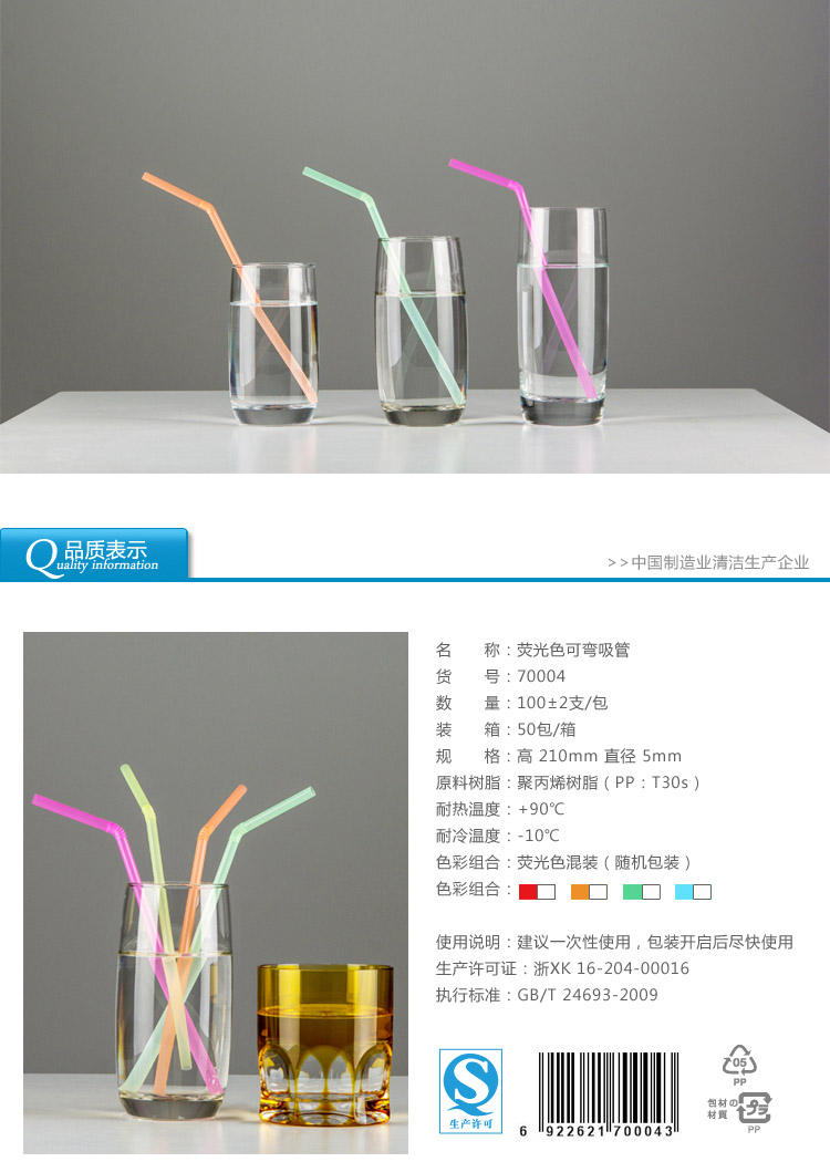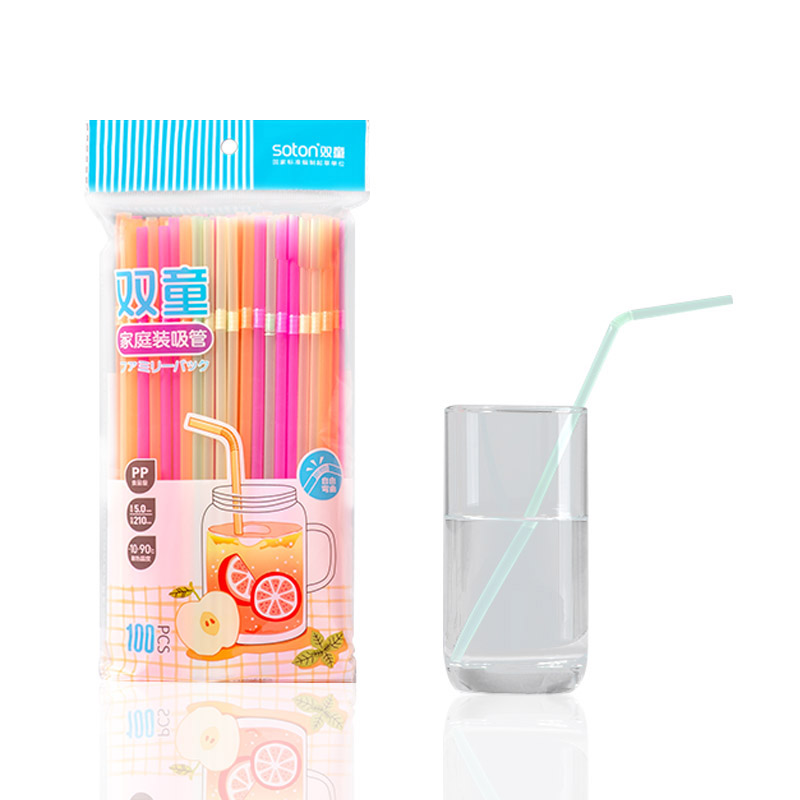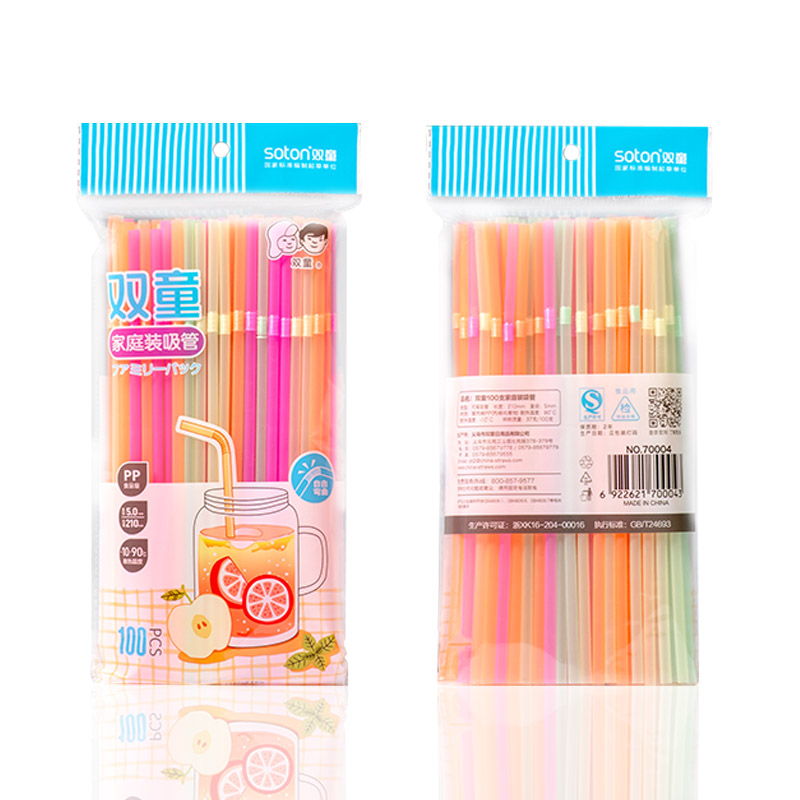 70004雙童100支熒光色家庭裝彎吸管