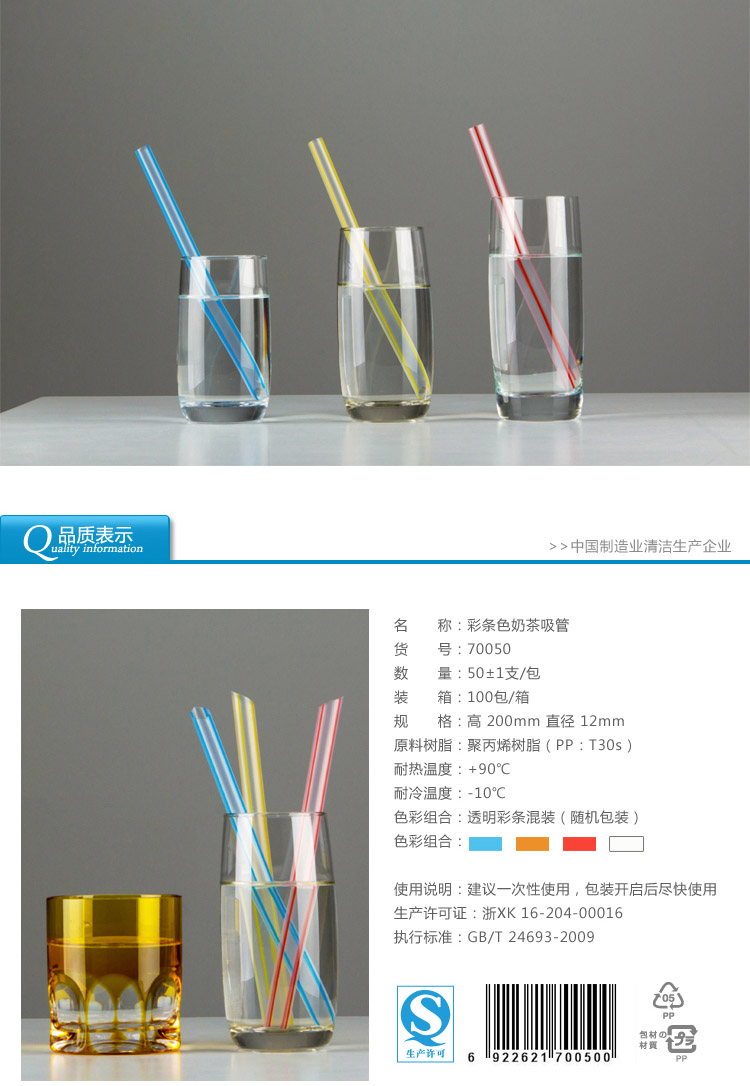 70050雙童50支透明彩條色珍珠奶茶吸管